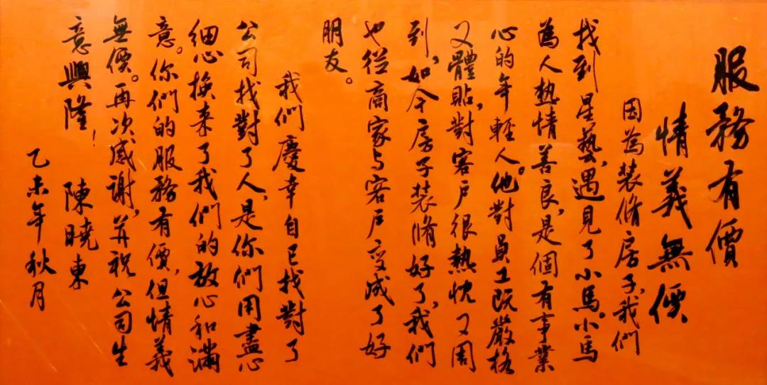 ▲金山公司客戶“書法感謝信”