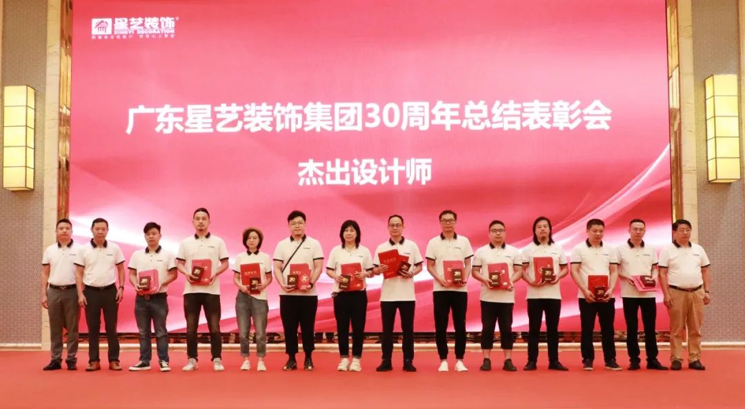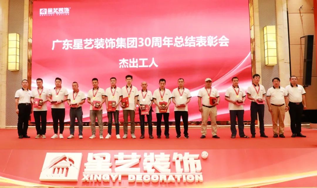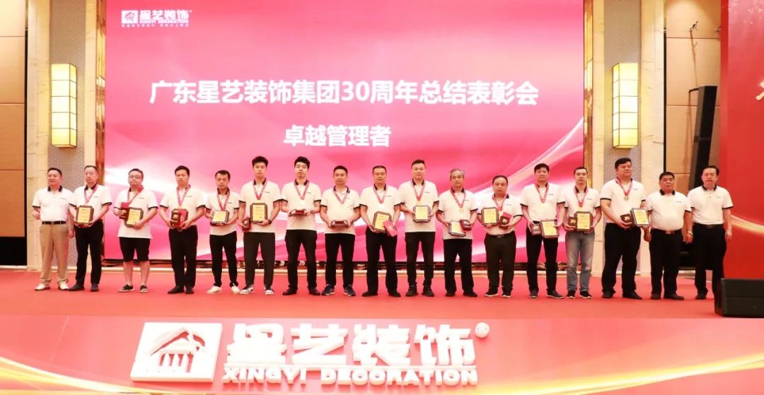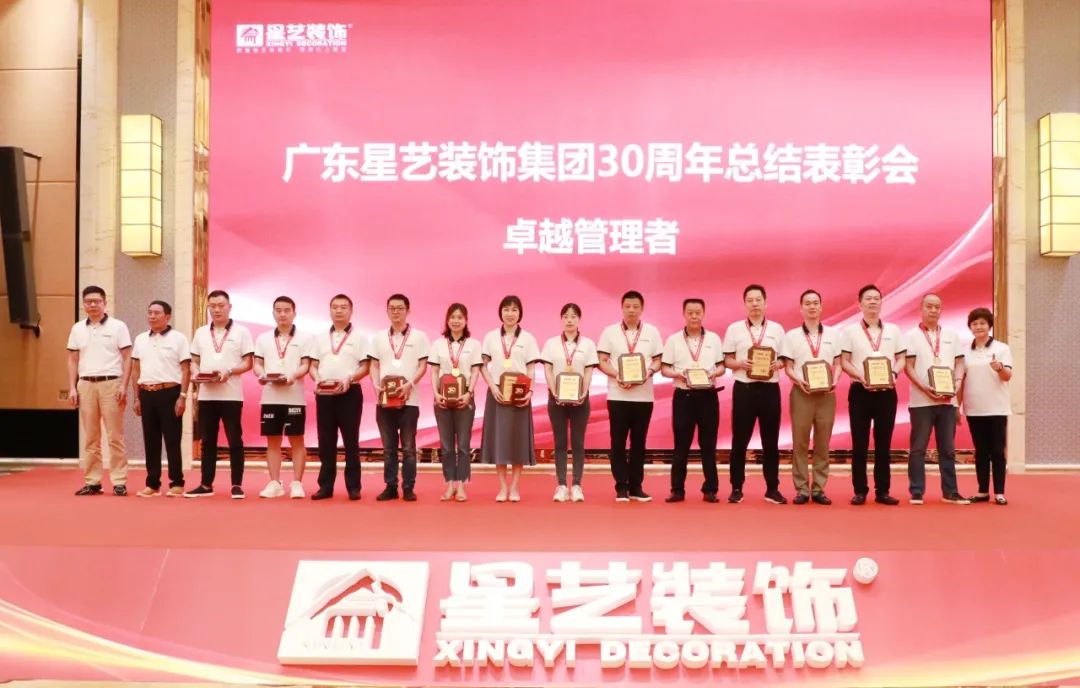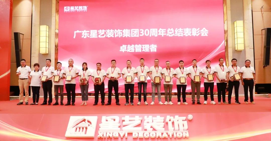在表彰大會上,星藝裝飾成立30周年特設“功勛人物獎”“卓越管理者獎”“杰出人物獎”等九大獎項,表彰為星藝裝飾作出突出貢獻的團隊和個人?!敖艹鋈宋铩北碚糜幸痪€工人、設計師、營銷專員、財務人員、部門經(jīng)理和管理者代表。