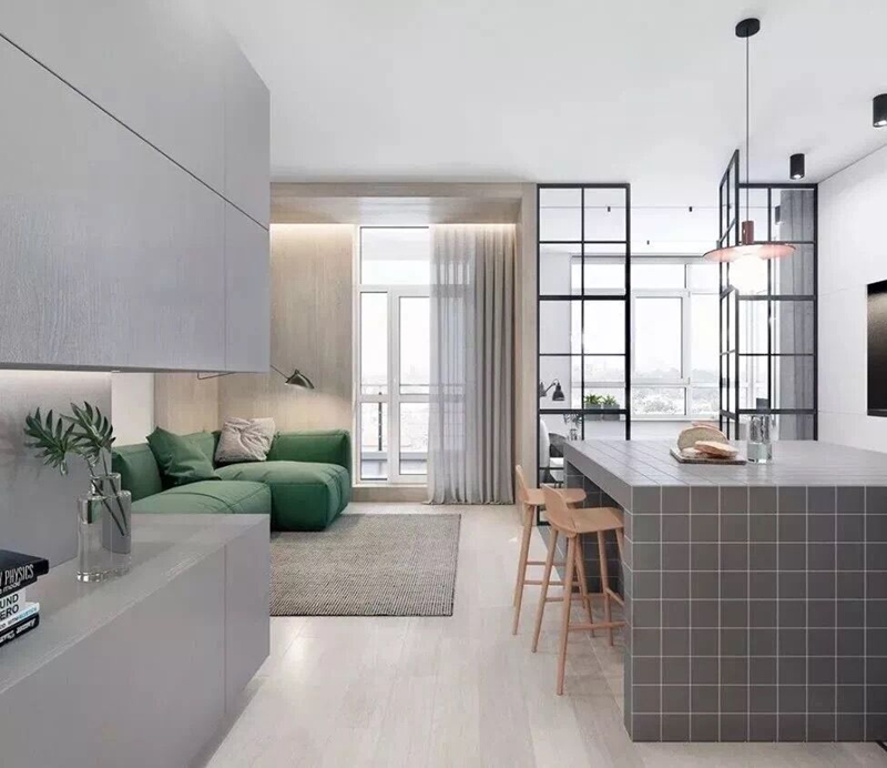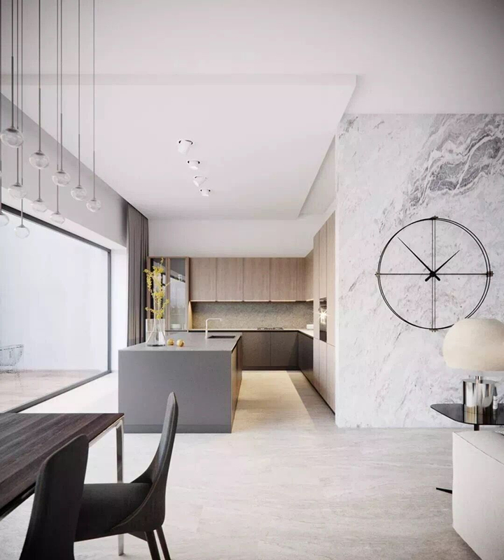 如果空間過小,就不用刻意用吊頂區(qū)分開客餐廳,這樣會(huì)令原本狹小的空間更顯局促??梢钥紤]把客餐廳看成一個(gè)整體來設(shè)計(jì)吊頂,在視覺上能起到放大空間的作用。