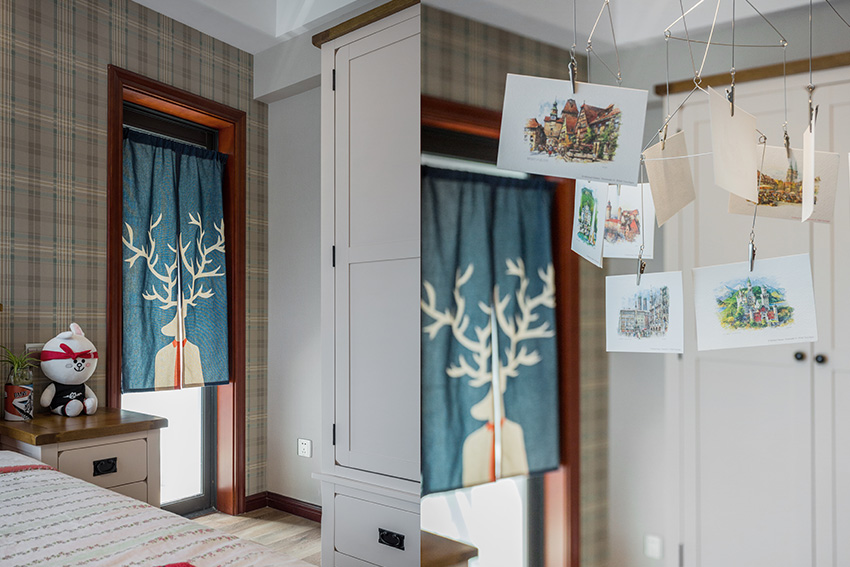 窗簾的設(shè)計也應(yīng)別具特色。色彩鮮艷、圖案活潑的樣式最佳。設(shè)計可以根據(jù)四季的變換,配上花色不同的窗簾。如在春天,窗簾可選用以綠色為基調(diào)的自然紋樣式。在明媚的夏日,可配上防日曬的彩色百葉窗等等。床上用品可繡上可愛的動物圖形或數(shù)字英文字母等。色彩的多樣化可使兒童產(chǎn)生豐富的幻想,促進(jìn)他們智力和情感的提高。