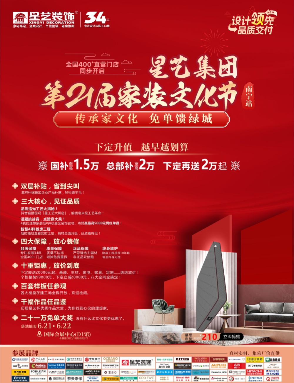 第21屆星藝裝飾家裝文化節(jié)南寧站 免單21萬(wàn)活動(dòng)火熱進(jìn)行中