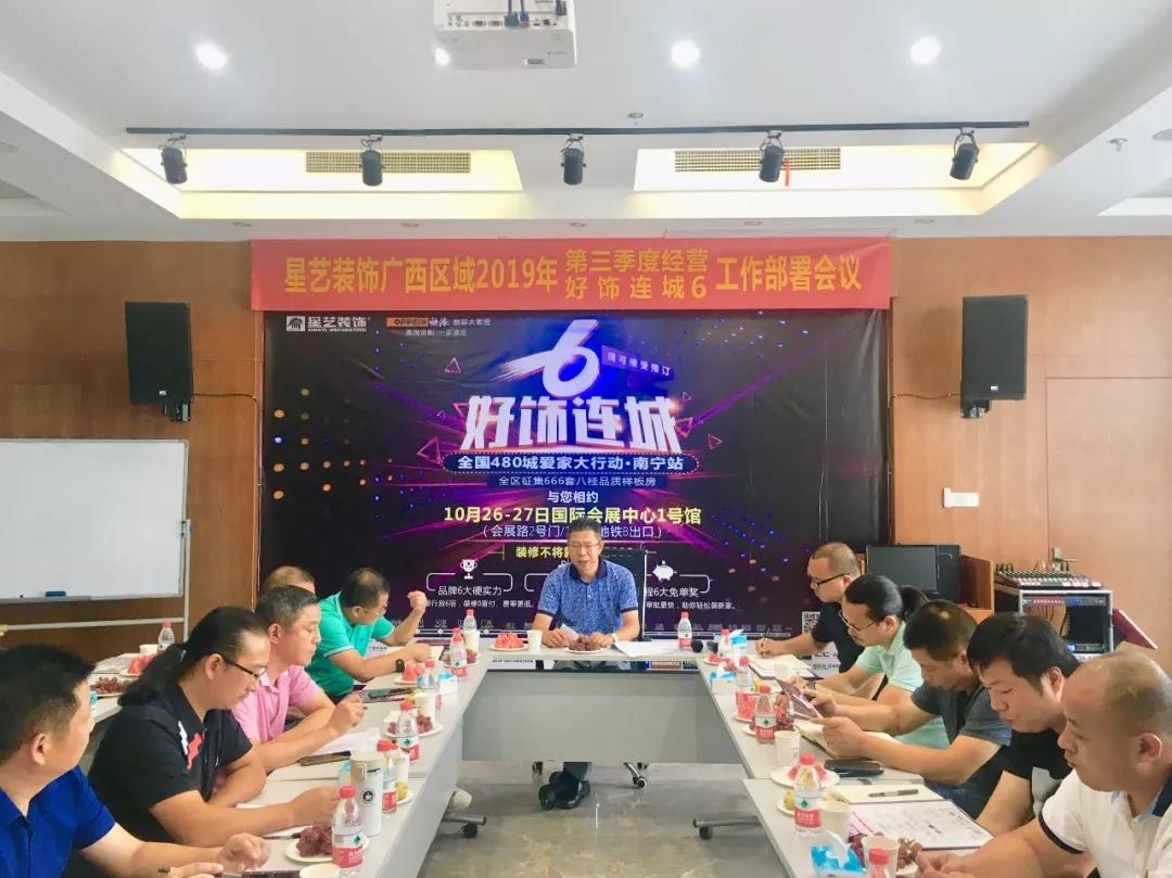 2019年9月2日,廣東星藝裝飾集團(tuán)廣西區(qū)域2019年“好飾連城6”工作部署會(huì)議在星藝廣西總部匯東國(guó)際會(huì)議室成功召開(kāi)。本次會(huì)議由集團(tuán)領(lǐng)導(dǎo)周曉霖、集團(tuán)決策委員會(huì)成員、廣西區(qū)域設(shè)計(jì)總監(jiān)徐橘、南寧區(qū)域總經(jīng)理周平生、貴港區(qū)域經(jīng)理劉英華、北部灣區(qū)域張鄭承以及廣西各分公司30余位經(jīng)理總監(jiān)參加;會(huì)議主旨圍繞正在火熱進(jìn)行中的“好飾連城6”進(jìn)行探討,由集團(tuán)領(lǐng)導(dǎo)周曉霖周總主持會(huì)議。