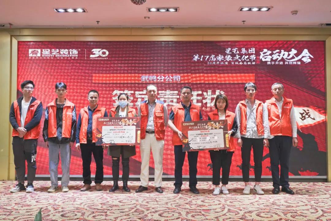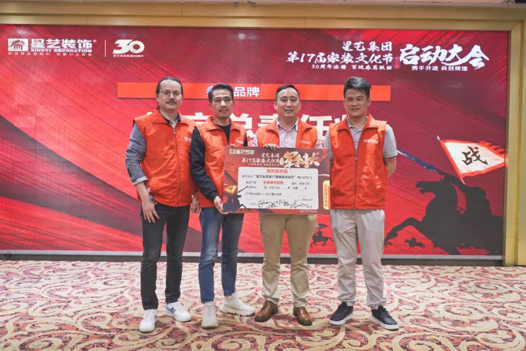 2021年4月9日,星藝裝飾第17屆家裝文化節(jié)(南寧站)在南寧金旺角國(guó)際大酒店隆重舉行, 集團(tuán)決策委成員、廣西區(qū)域總監(jiān)徐橘,南寧區(qū)域總經(jīng)理周平生,南寧區(qū)域總監(jiān)李明,建材聯(lián)盟商家品牌代表以及星藝南寧各門店經(jīng)理、全體設(shè)計(jì)師、營(yíng)銷員、工程部家人歡聚一堂,共襄盛舉,為17屆家裝文化節(jié)活動(dòng)積累學(xué)習(xí),定目標(biāo),簽署“軍令狀”,在全體員工嘹亮的《星藝人》歌聲中開(kāi)啟一年一遇的精彩盛事!