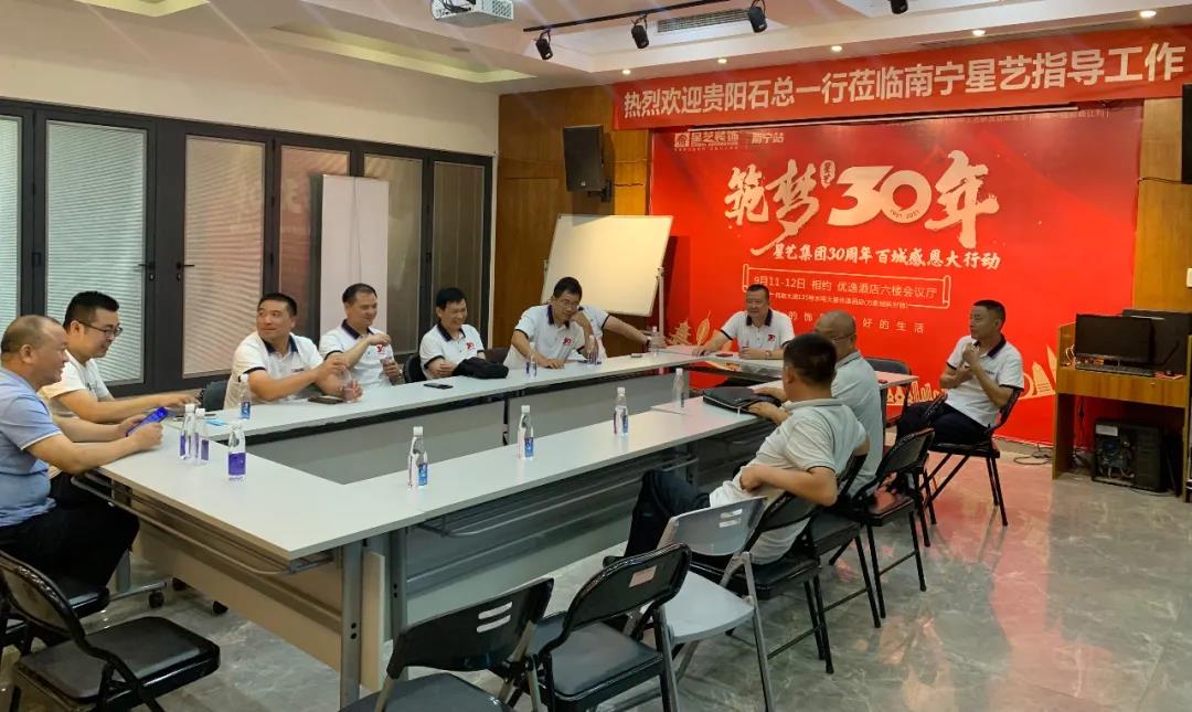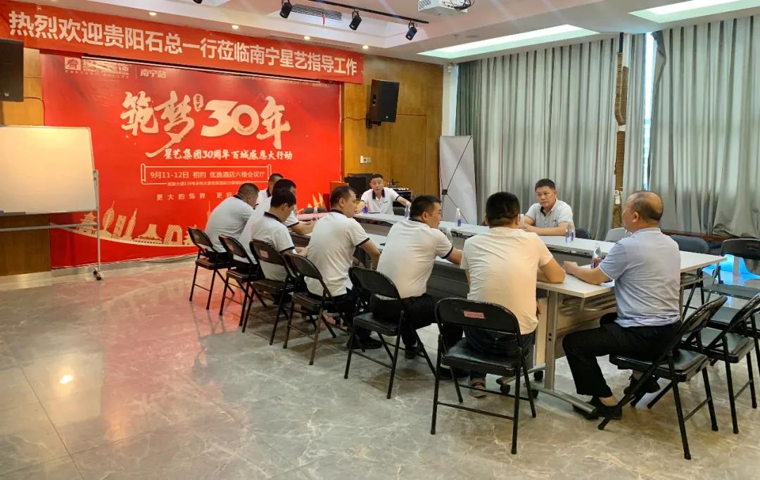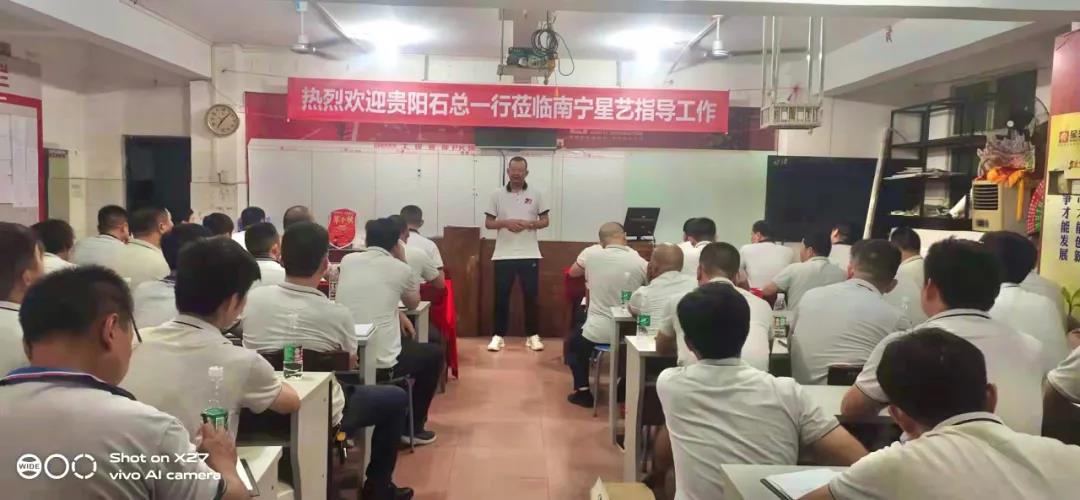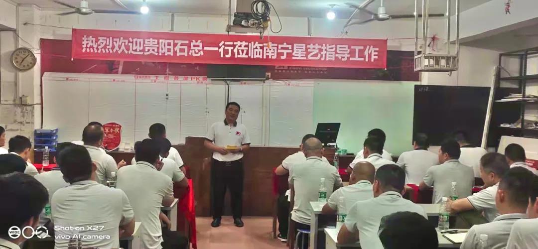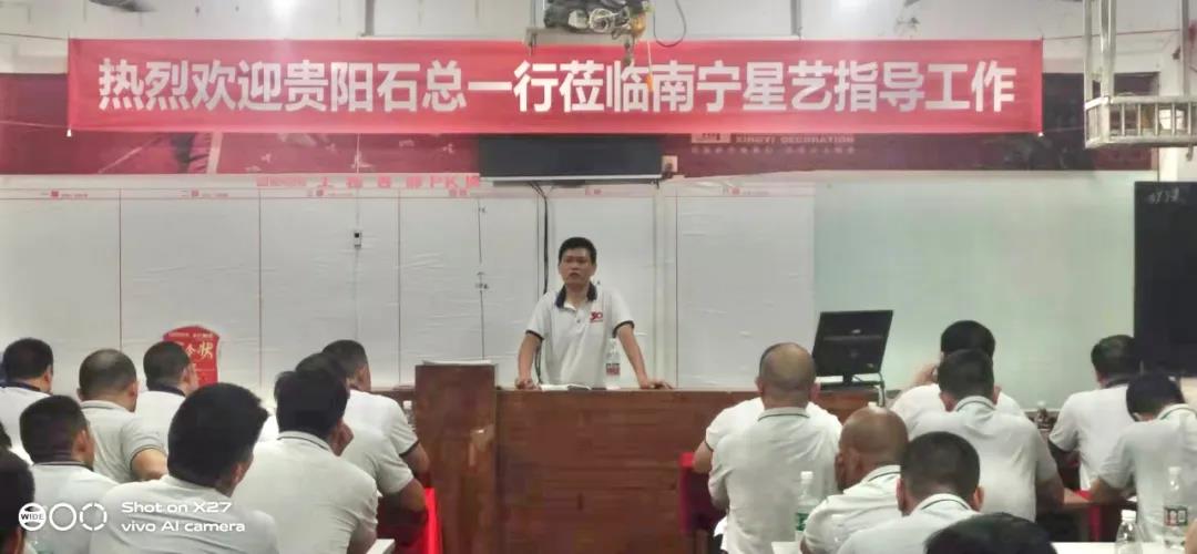 2021年8月29日,星藝貴陽(yáng)公司石學(xué)軍、星藝凱里公司寧歸君、星藝畢節(jié)公司寧擁名等經(jīng)理一行人蒞臨星藝南寧交流指導(dǎo)工作,在星藝裝飾南寧公司總經(jīng)理周平生、工程總監(jiān)柯善林、黃江水及質(zhì)檢總監(jiān)余光生等領(lǐng)導(dǎo)的陪同下,貴陽(yáng)&南寧兩地的兄弟公司就南寧工程管理進(jìn)行了交流與探討。