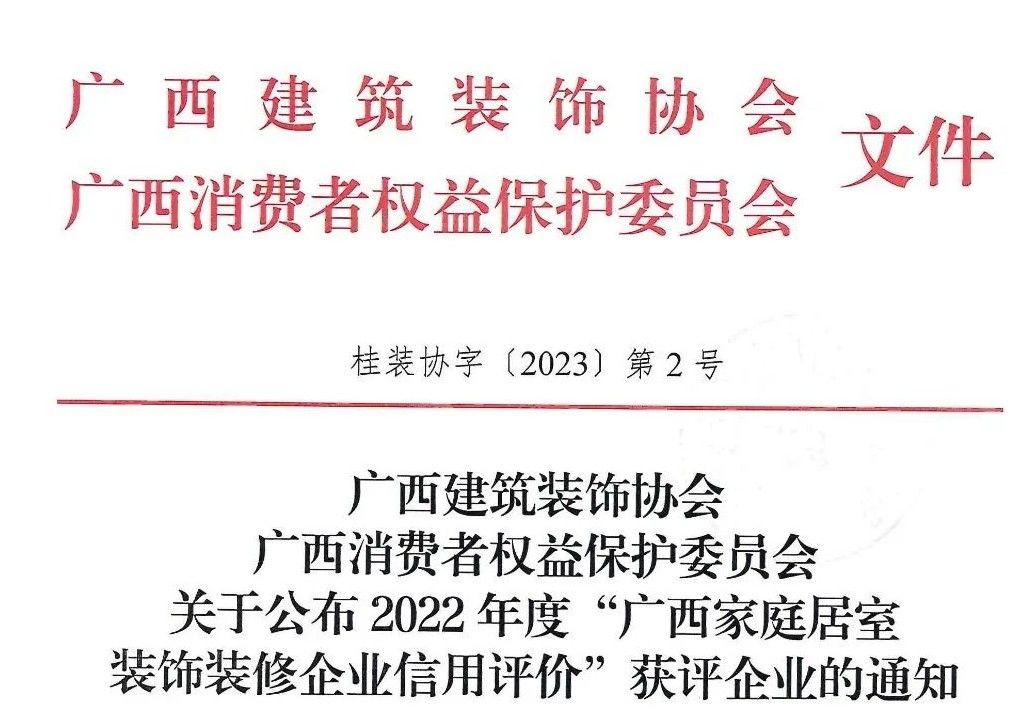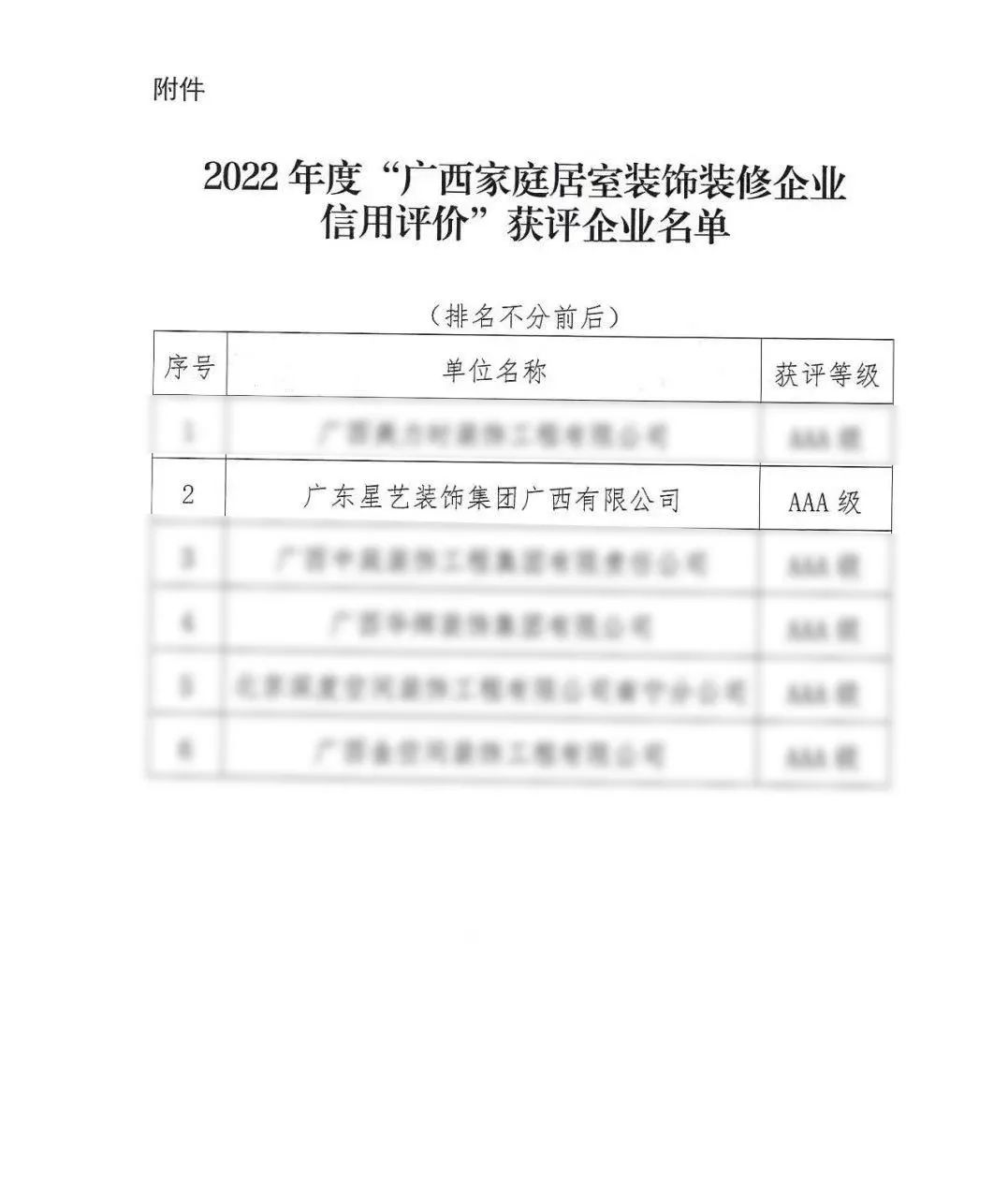 附件:2022年度“廣西家庭居室裝飾裝修企業(yè)信用評價”獲評企業(yè)名單